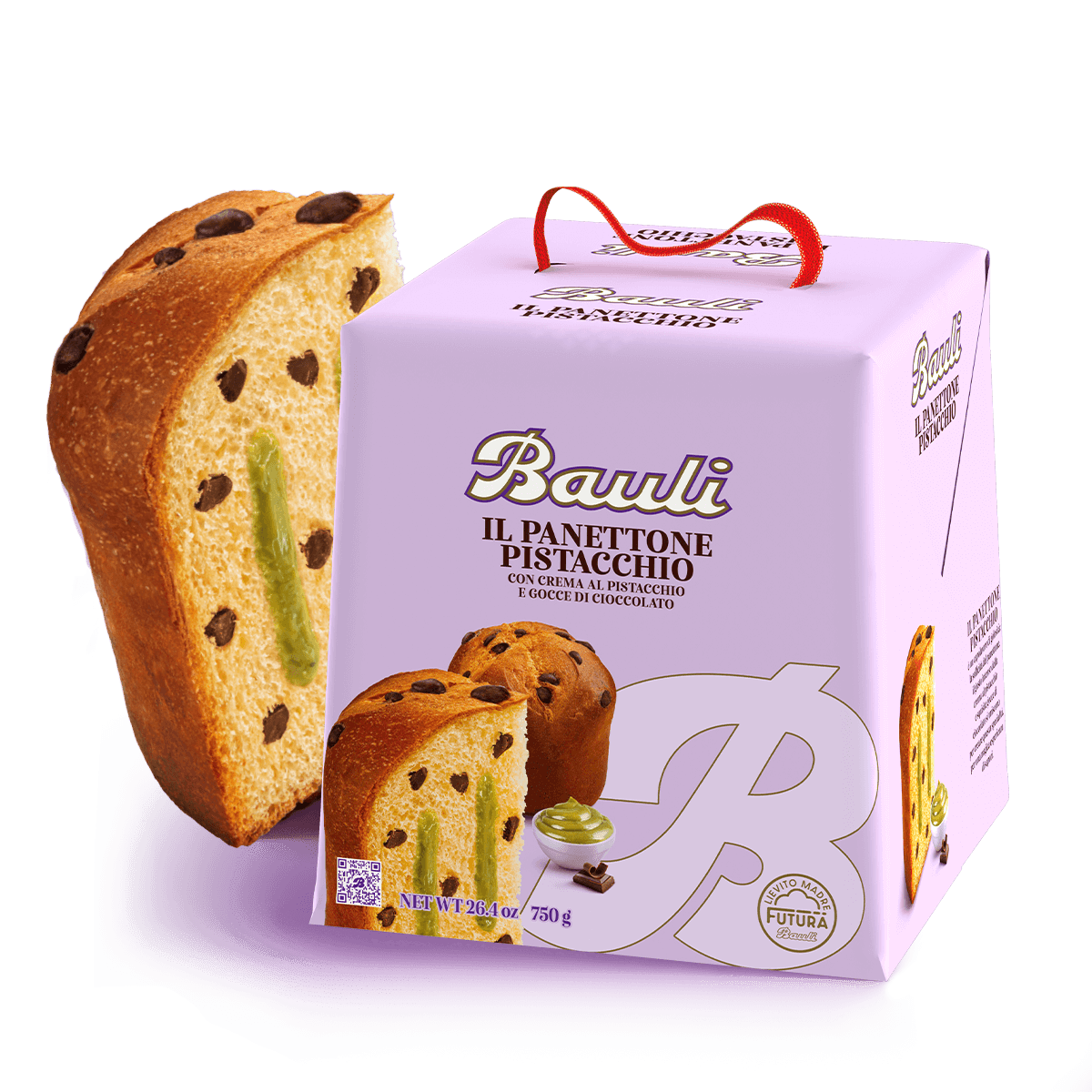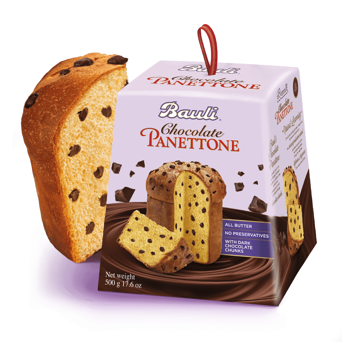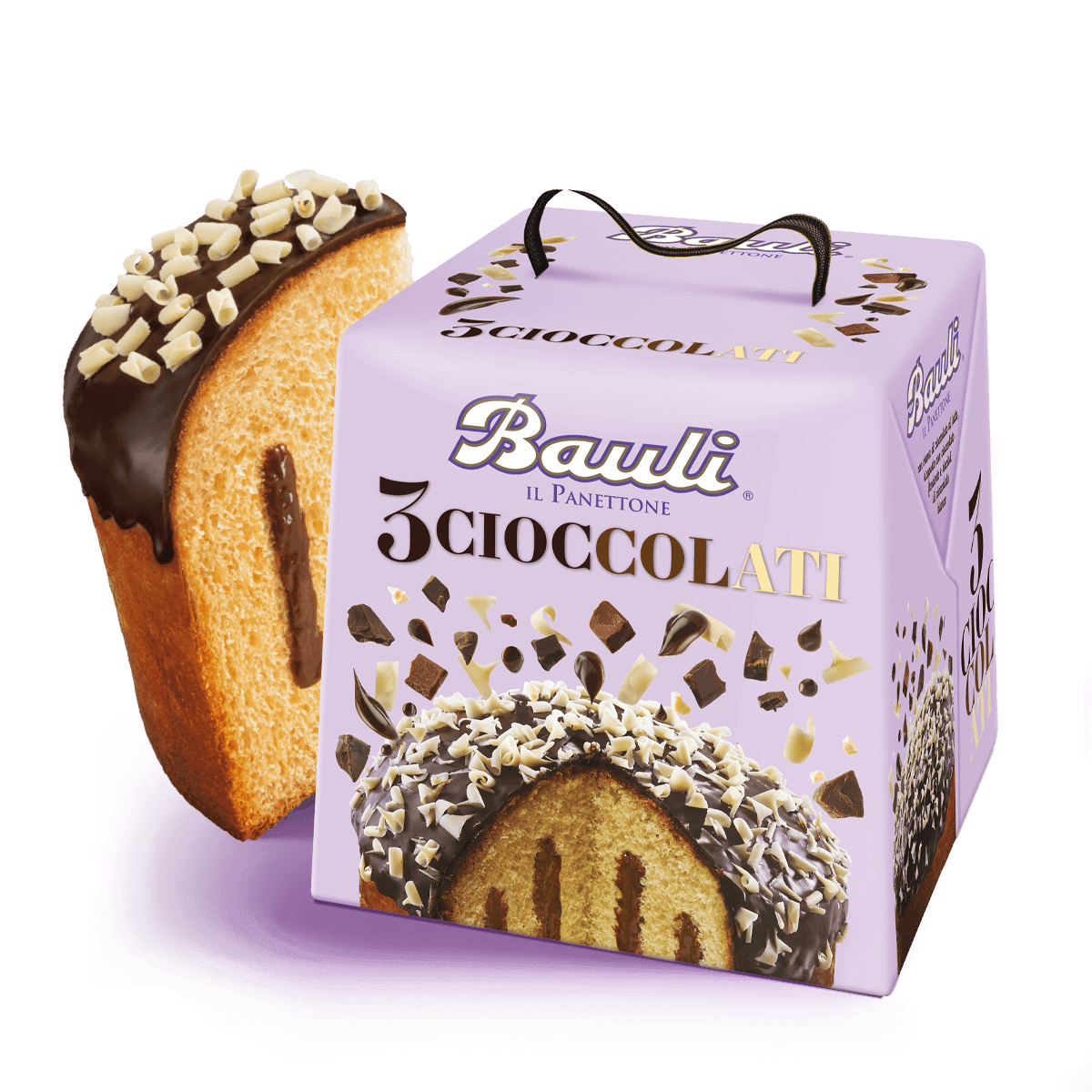 Panettone met room met Cointreau-smaak, bedekt en versierd met pure chocolade.
